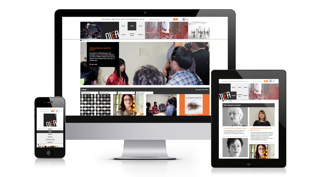 For the National Institute of Experimental Arts, Holly Sydney built a custom responsive Drupal website. The site features artworks, artists, and performances. It is heavy in multi media and frequently updated, requiring a flexible, robust CMS with a cross compatible front end. Our open source Drupal solution offered NIEA staff the versatility and stability they needed, while maintaining cross-platform support and an easy to update back end.